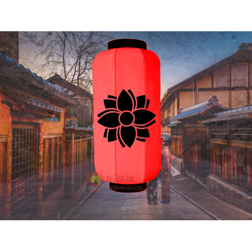 đèn lồng nhật đỏ vẽ biểu tượng hoa sen