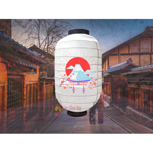 đèn lồng nhật trắng vẽ núi fuji và hoa nan ngang