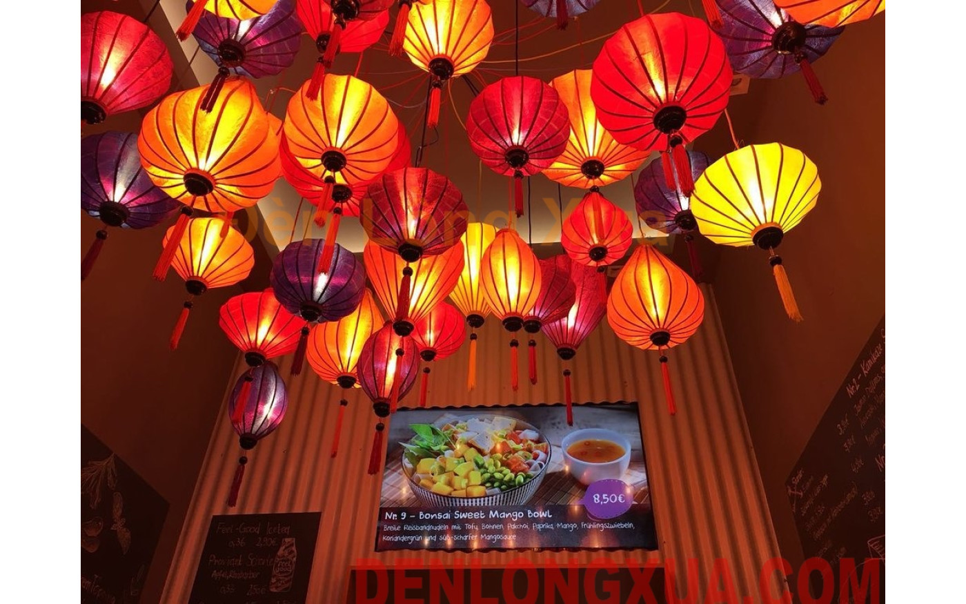 Chùm đèn lồng trang trí nhà hàng ăn uống, tạo sự khác biệt cho nhà hàng của mình bằng cách trang trí một chùm đèn lồng truyền thống tại trung tâm với màu sắc đỏ vàng đặc trưng tạo ấn tượng mạnh cho mọi người tới…